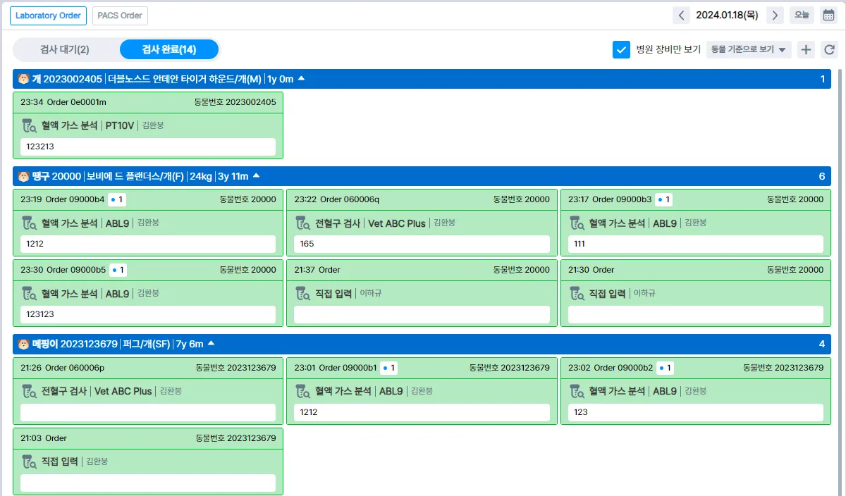 동물별 검사 결과를 한눈에 확인할 수 있는 보기 기능이 추가되었습니다.