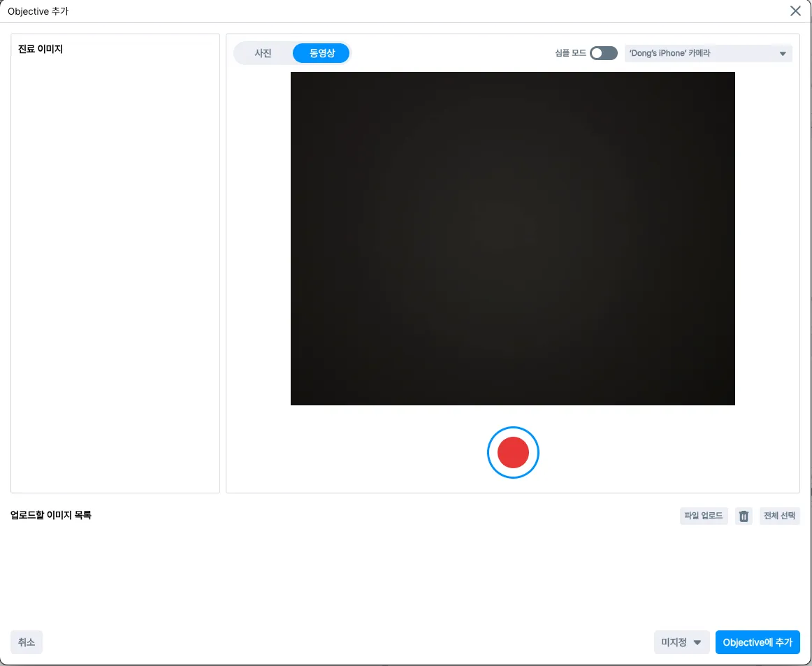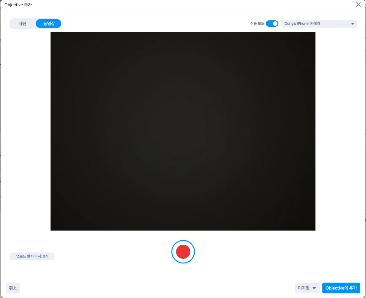 Objective에서 동영상 촬영 및 업로드가 가능합니다.
