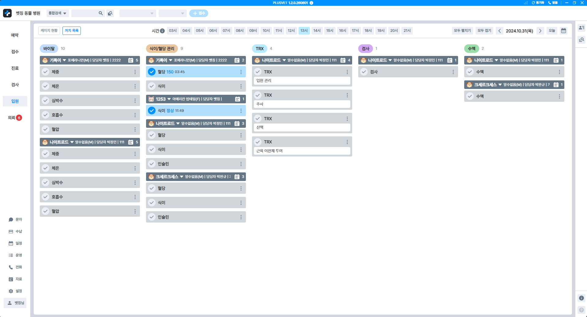 입원 차트 내 모든 처치 항목을 시간대별로 체계적으로 관리할 수 있는 전용 탭이 추가되었습니다.