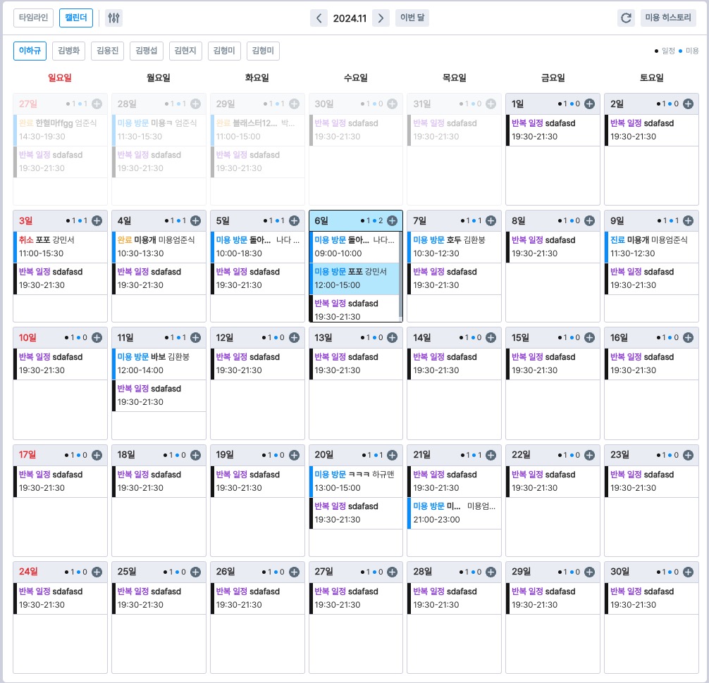 미용 방문만 별도로 관리할 수 있는 전용 스케쥴러가 추가되어, 원내 미용 서비스를 체계적으로 운영할 수 있습니다.
