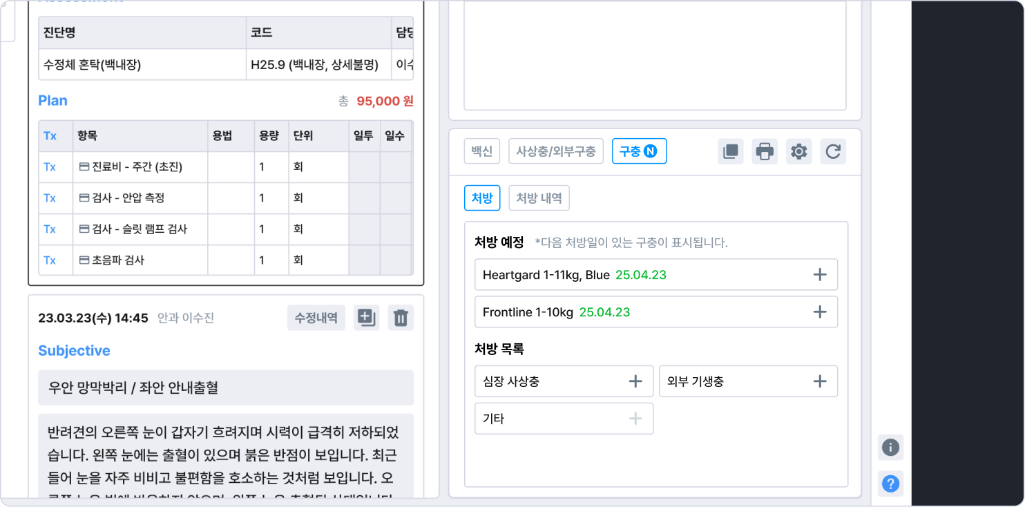 낱개가 아닌 여러 구충제를 한 번에 일괄 처방할 수 있어 UI가 더 편리해졌습니다.