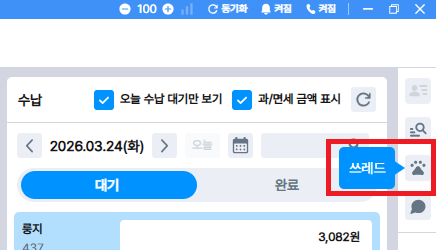 쓰레드를 켜둔 상태에서 해당 알림을 확인하고 즉시 보호자 안내, 후속 예약 등록, 수납 처리 등의 업무를 이어갈 수 있습니다.
